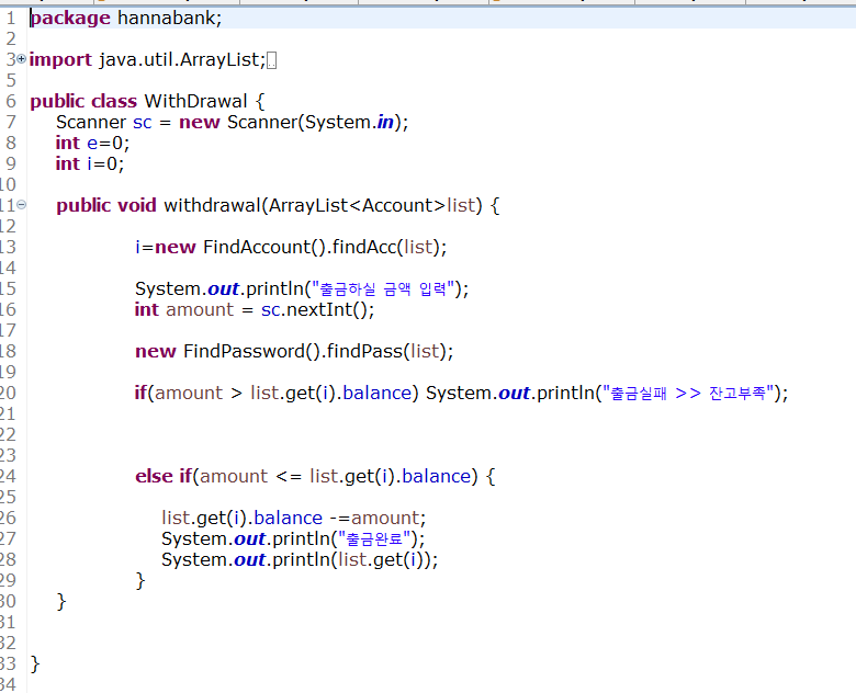 잘 돌아가면 그나마 괜찮은데 이상하게 출금계좌를 두 번 물어보는 문제 발생.... 코드가 너무 길고 if가 너무 많아 도대체가 어디서 잘못된 건지 알 수가 없음. 메서드처럼 if문도 접을 수 있었으면 좋았을 텐데;;;;