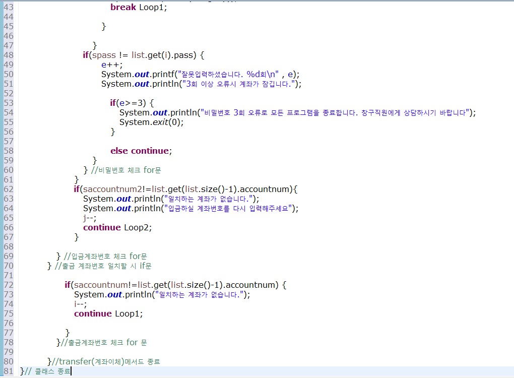 입력한 계좌번호가 배열에 없으면 계속 반복 입력을 하게 했다.