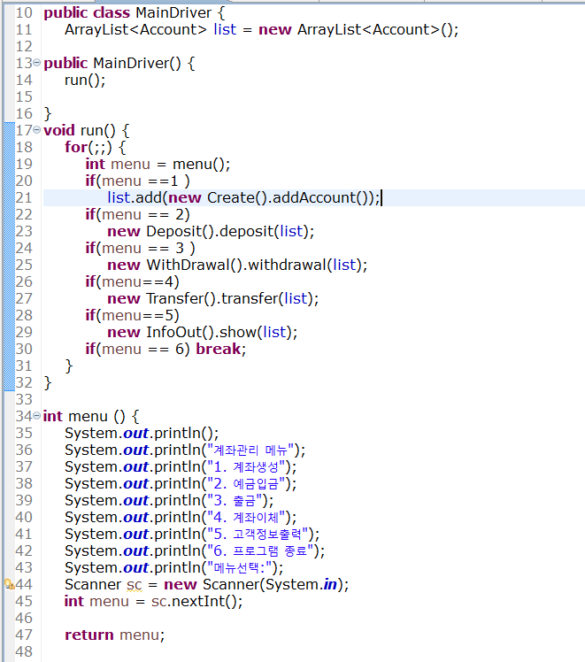 이 간단한 은행 프로그램에 클래스가 9개나 나왔다.