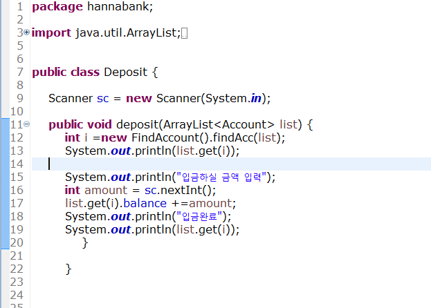 FindAccount 클래스에 보면 일치하는 인덱스 값을 찾으면 리턴 전에 해당 값을 in에 대입하게끔 했다.