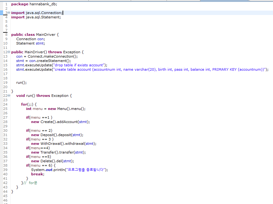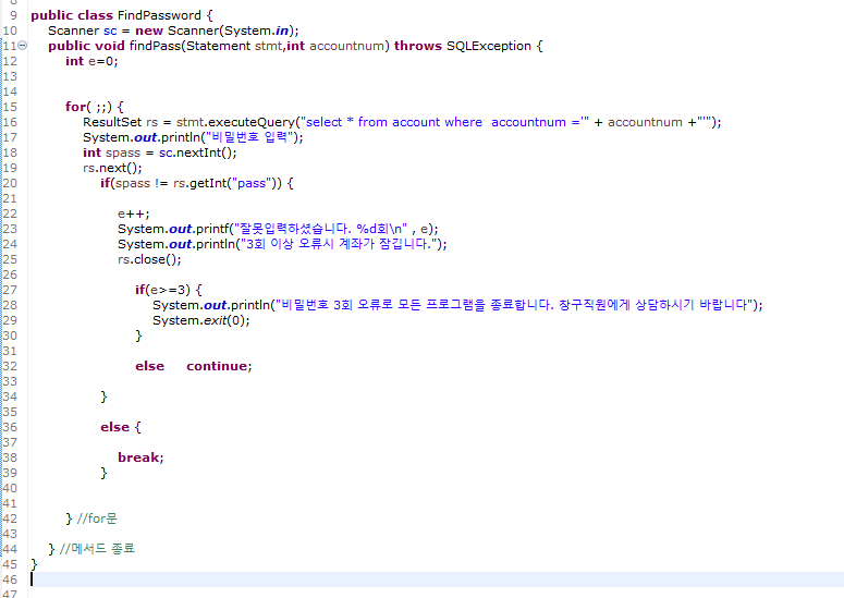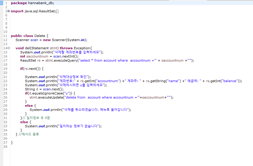 21 ; statement 객체를 매개변수로 받아서 데이터베이스에 입력한 계좌번호가 있는 지 조회 후