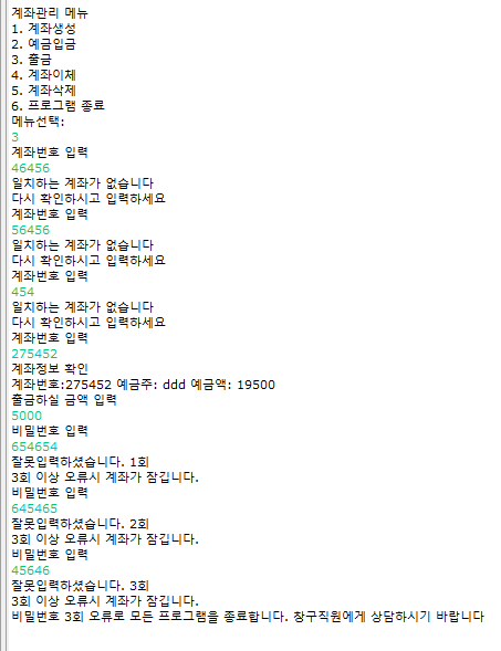 계좌번호 조회/ 비밀번호 대조 클래스